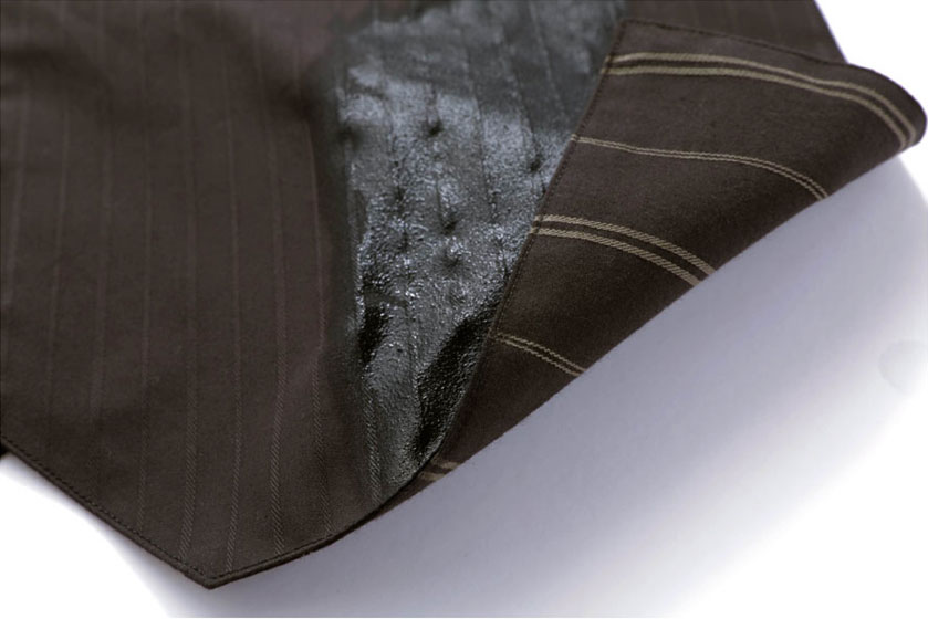 ベストタイプの生地には、飛び跳ね汚れが染み込みにくい特殊加工を施しています。